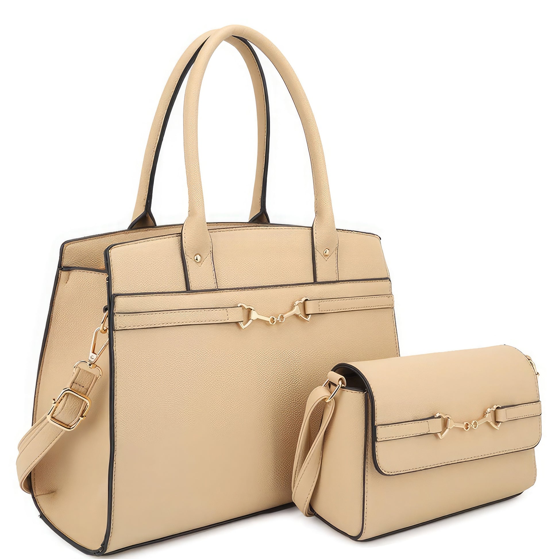 2in1 Matching Design Handle Satchel With Crossbody Bag